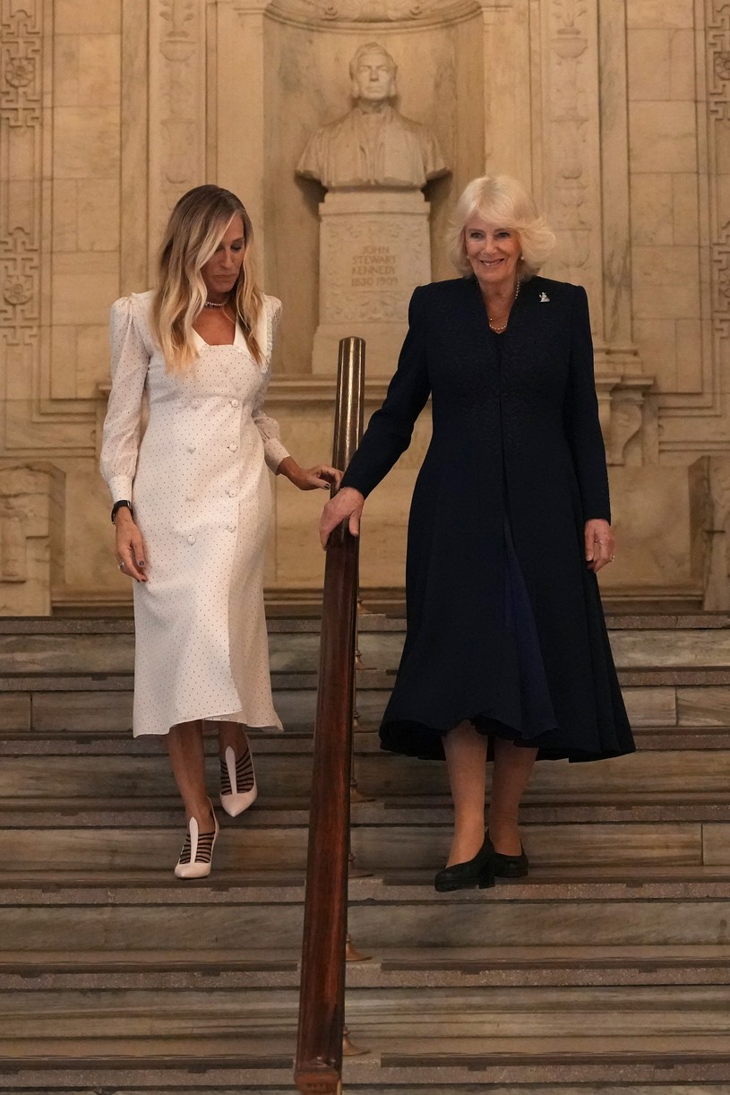 Sarah Jéssica Parker eu Anna Wintour estavam entre as celebridades que conheceram Rainha Camila para um evento de leitura durante a visita da realeza à cidade de Nova York.
